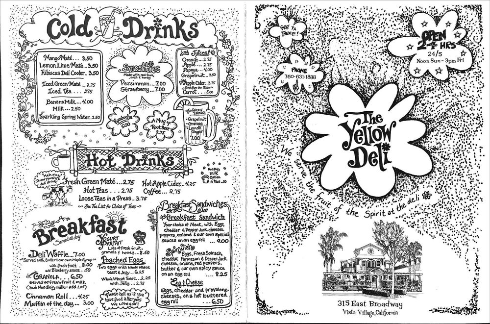 Introducing The Yellow Deli, a charming restaurant in Vista, CA that offers a unique dining experience. The menu features a variety of options, including vegan dishes, gluten-free bread, and delicious homemade treats. Customers praise the cozy ambiance and friendly staff, making it a perfect spot for breakfast, lunch, dinner, or late-night bites. The decor, reminiscent of a tavern meets hippie style, adds to the overall charm of the place. While some reviewers mention slower service at times, the fresh ingredients, great baked goods, and flavorful meals make it worth the visit. From chilli with heavenly bread to veggie burgers and smoothies, The Yellow Deli provides a delightful dining experience for all. With options for takeout, delivery, and catering available, this restaurant is a must-visit for those looking for wholesome food in a welcoming environment.